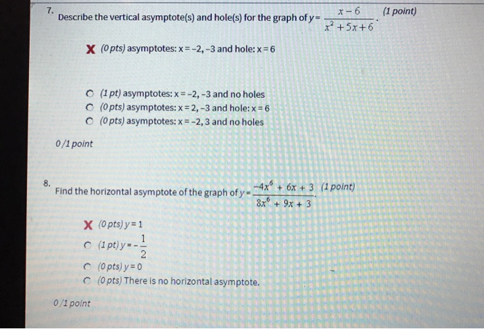 Solved 7 Describe The Vertical Asymptote S And Hole S For Chegg Com